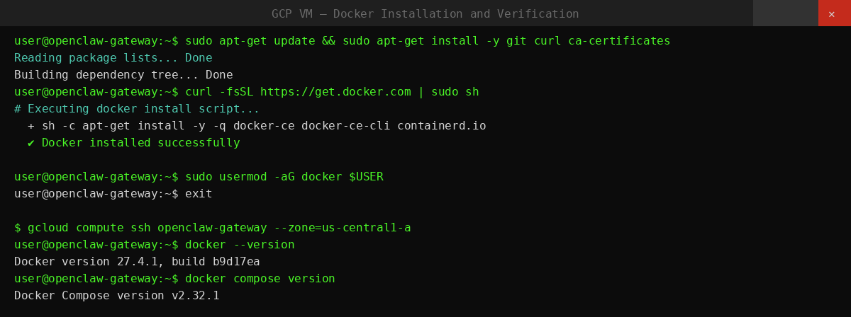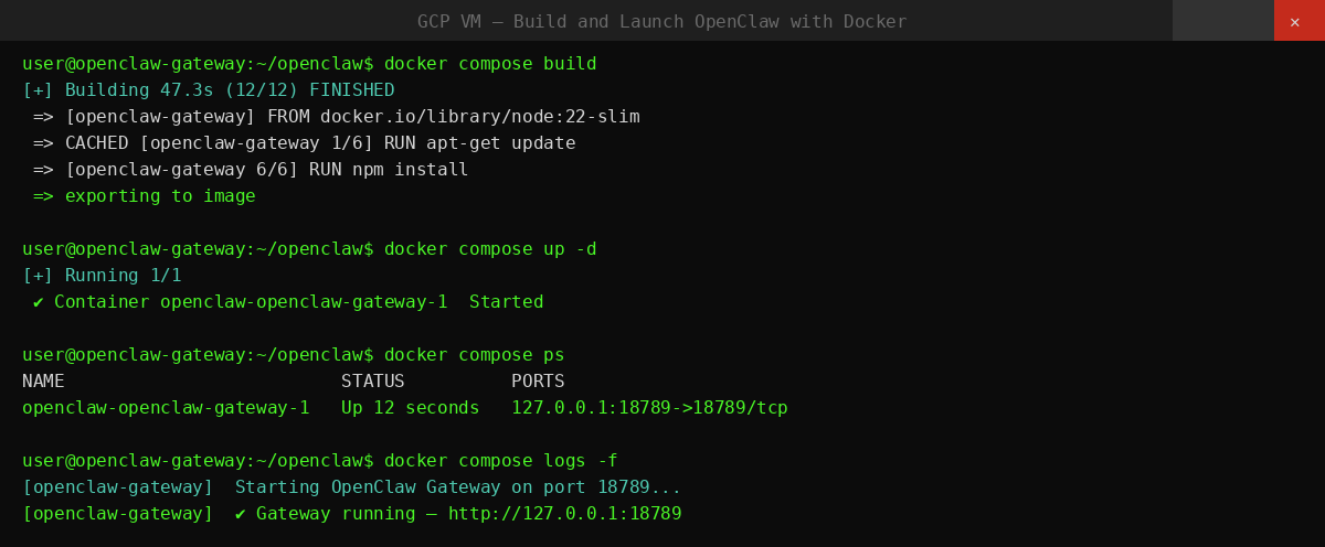 Building and launching OpenClaw with Docker Compose on GCP