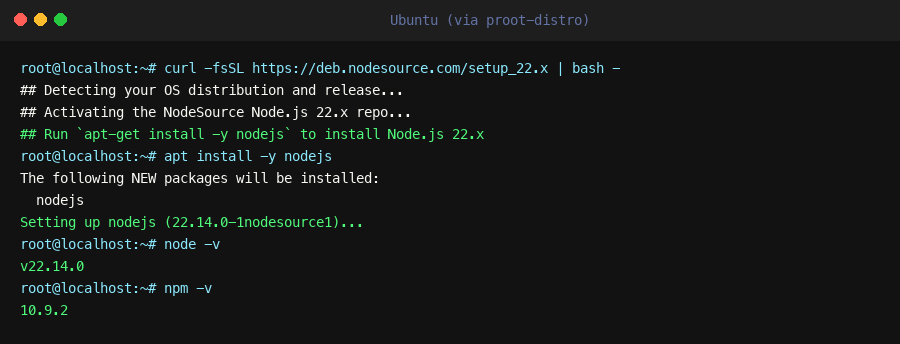 | Command not found | Not inside Ubuntu | Run proot-distro login ubuntu |